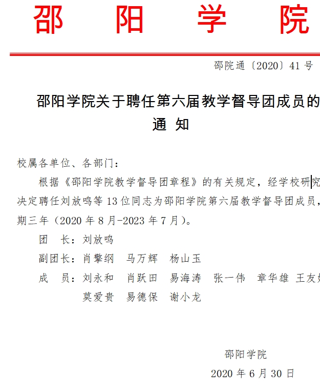 beat365平台官方网站关于聘任第六届教学督导团成员的通知