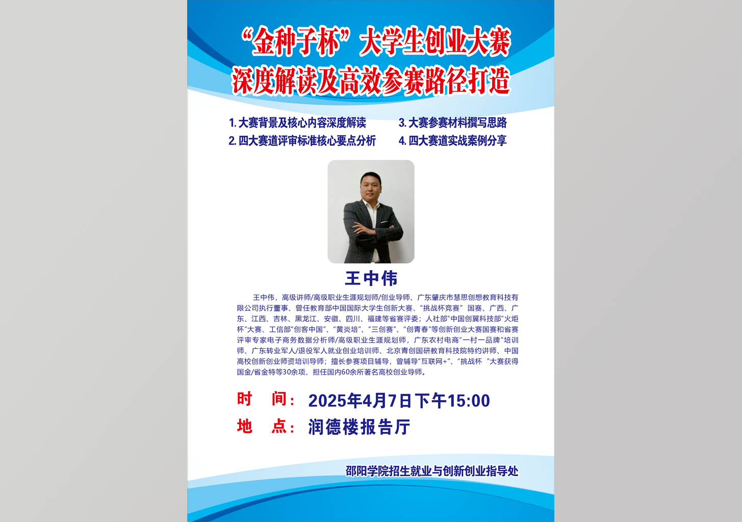 王中伟:“金种子杯” 大学生创业大赛 深度解读及高效参赛路径打造