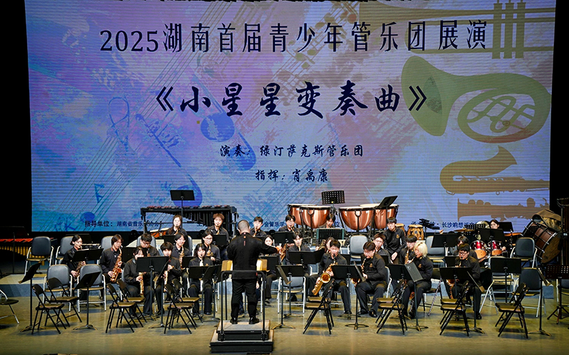 7月9日,2025湖南首届青少年管乐团展演在长沙实验剧场圆满落幕。代表beat365平台官方网站参赛的绿汀萨克斯管乐团以精湛技艺和卓越表现,在三十余支高校及高水平管乐团中脱颖而出,荣膺本次展演最高奖项——“示范乐团”奖,展现了beat365平台官方网站音乐教育的丰硕成果。