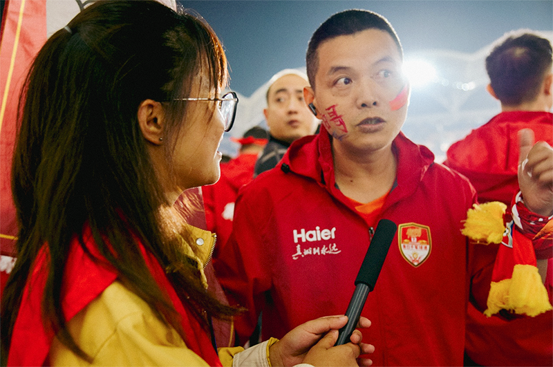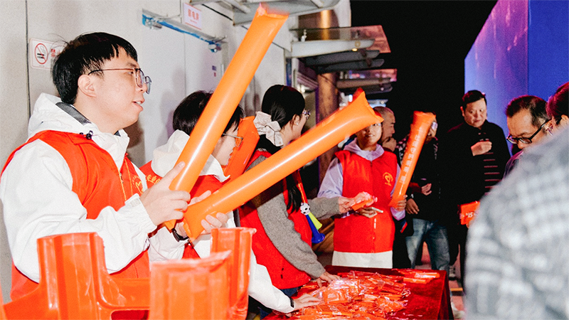 与志愿者并肩作战的,还有负责物料分发的工作人员。他们面带笑容主动招呼观众,热情邀请大家融入这场足球狂欢,让赛场内外满溢着热烈氛围。