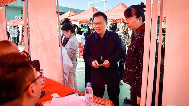 校党委委员、副校长黄秋生亲临双选会现场,与企业代表、求职学生及工作人员亲切交流。他详细询问企业招聘需求与beat365毕业生求职情况,鼓励企业与学校加强校企合作,建立长效合作机制,共同培养符合市场需求的高素质人才;同时叮嘱毕业生要树立正确的就业观,珍惜就业机会,积极主动求职,努力实现个人职业发展与社会需求的精准对接。